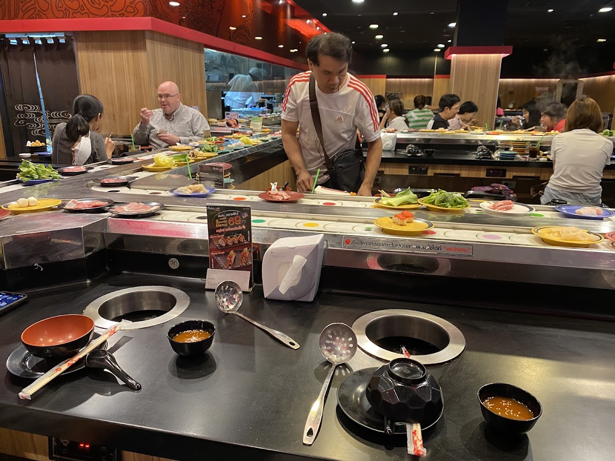 Great food, it cost around 500 baht for two people, full buffet, refillable drinks, they have fried food section such as fried etc… time limit is 2 hours , and you choose your own broth. I would recommmed not going weekends because the line is so long with locals waiting for hours. You can choose beef, pork, prawns, squid etc….a wide range to choose from